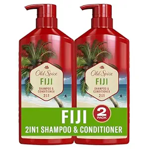 Old Spice Fiji 2-in-1 Shampoo and Conditioner Set for Men, with coconut and tropical wood scent, for healthier, fuller, and more hydrated-looking hair, 21.9 fluid ounces each.