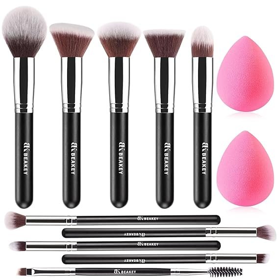 BEAKEY Makeup Brush Set, Professional Foundation, Concealer, Eyeshadow, Bronzer Powder Applicator, 2 Blender Sponges with Beauty Paper Case, Stocking Stuffers